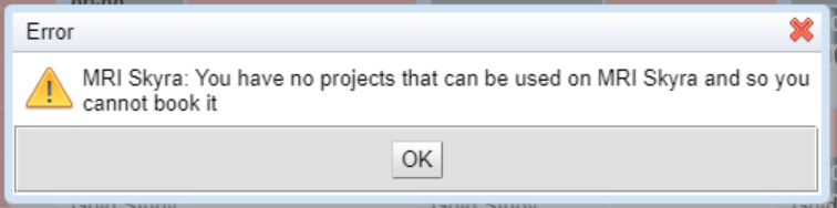 Context: Depending on how a resource is setup within a Calpendo a user will often need to be a member of a project in order to book that resource. Otherwise the following error message will appear.