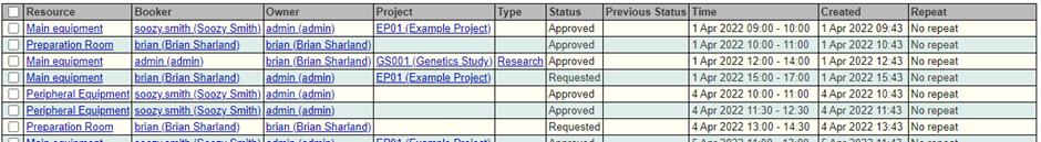 This is the most powerful report style as it allows you to build a report that includes fields held on other tables which are linked to from your search. For example when searching for Bookings, you could also add columns to your report containing the funding information stored on the attached Project, or the email address of the owner of the booking. This is an excellent report style for monthly usage reports that can be used for billing. - Summary Report
