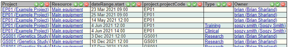 If you select a combination of fields which is unique for each record then your group report will contain only one record in each row (eg most systems do not allow double bookings on a resource, so Resource/dateRange.start). Due to the ability to get data from attached biskits such as the Project and the Owner of the booking, this is a simple way to create an extract for billing purposes.